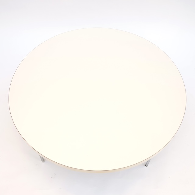 ホワイトラミネートの厚めの天板にサテンクロームの細い脚